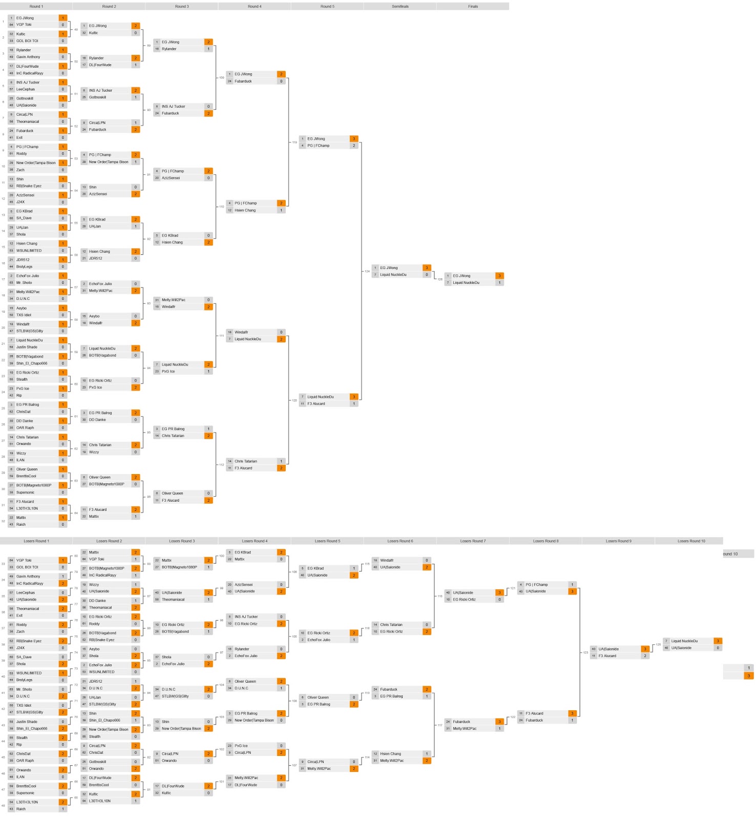 Some more top players that attended include Liquid|Hungrybox, , FOX|Julio, EG|PR Balrog, Liquid|NuckleDu, COG|Mew2King, PG|Filipino Champ, RB|Snake Eyez, Tempo|Westballz, EG|Ricki Ortiz, Brenttiscool, Tempo|Axe, CLG|SFAT, EG|K-Brad, PG|Wobbles, SPY|MacD, Lucky, Duck, GS|Gllty, BrolyLegs, MIOM|S2J, PG|Esam, COG|Wizzrobe, NO|Tampa Bison, Hsien Chang, SPY|Nintendude, Liquid|Ken, Dot|Danke, PxG|Ice, and many, many more.